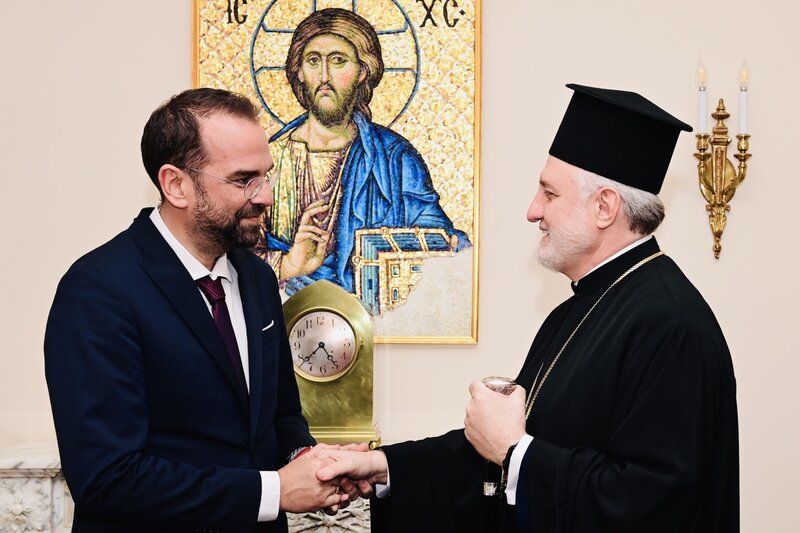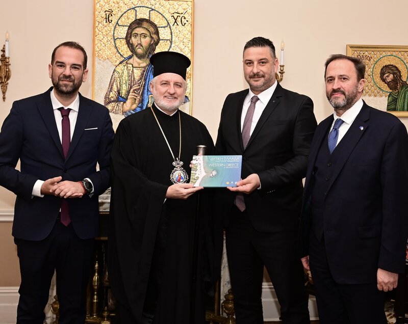 Αργότερα, ο κ Φαρμάκης είχε την ευκαιρία να συναντηθεί και με τον Αρχιεπίσκοπο Αμερικής, κ. Ελπιδοφόρο, ανταλλάσσοντας απόψεις και προσκαλώντας τον κ. Ελπιδοφόρο να επισκεφθεί την Δυτική Ελλάδα και ιδιαίτερα την Ι.Π Μεσολογγίου κατά την επέτειο των 200 ετών από την ηρωική έξοδο, που θα τιμηθεί την επόμενη χρονιά. “Θα ήταν ιδιαίτερη τιμή να σας υποδεχτούμε στο Μεσολόγγι, σε μία πολύ σημαντική επέτειο, όχι μόνο για την περιοχή μας αλλά για ολόκληρη την Ελλάδα” ανέφερε ο Περιφερειάρχης, με τον κ. Ελπιδοφόρο να αποδέχεται την πρόσκληση.