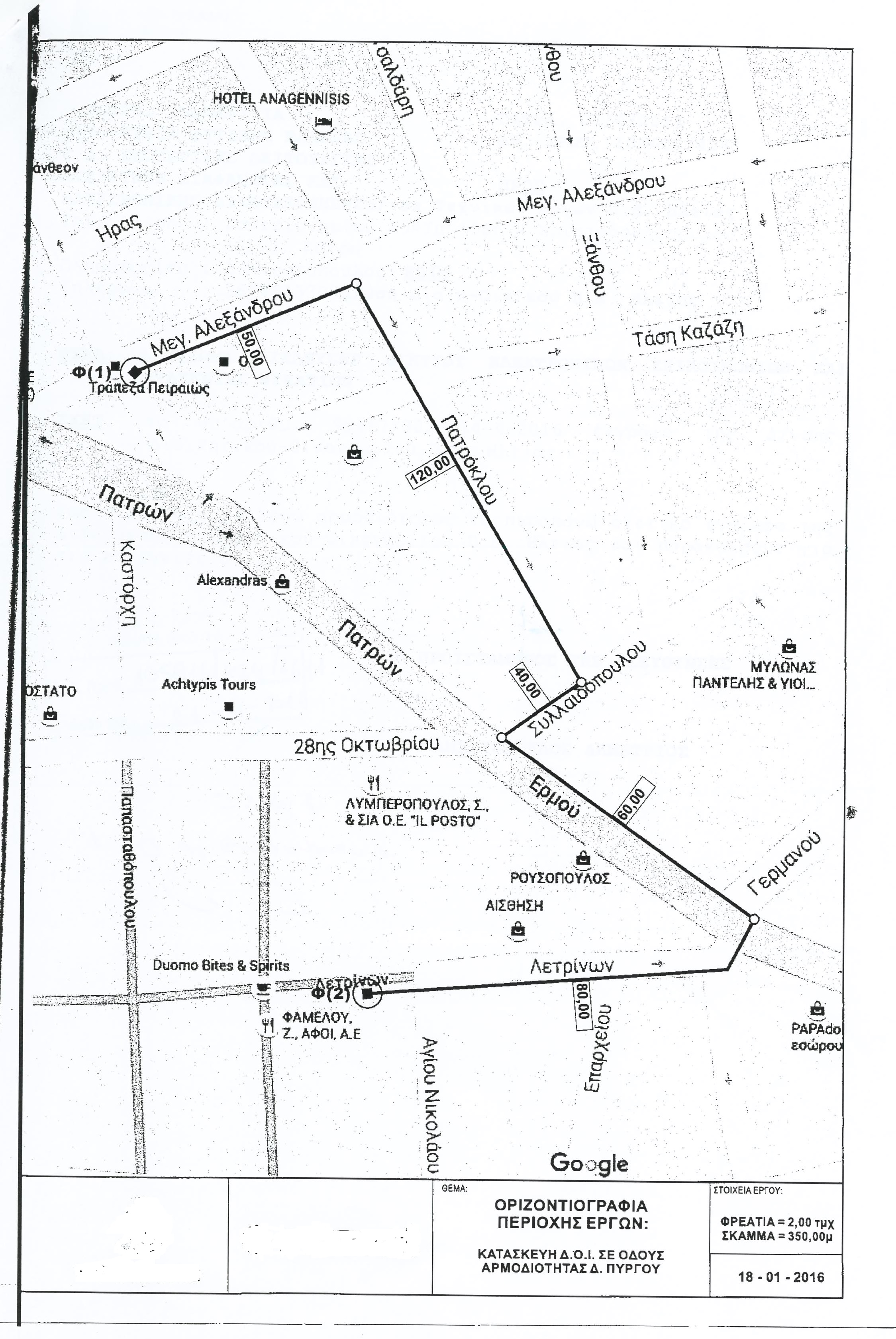 Σε συνέχεια αιτήσεως παροχου για την Χορήγηση Δικαιωμάτων Διέλευσης Οπτικών Ινών στο Δήμο Πυργου, η οποια μας διαβιβάστηκε με το με αριθ 105607/424  έγγραφο Γ.Δ Εσωτερικης Λειτουργίας  - Διευθυνση Διαφανειας και Ηλεκτρονικης Διακυβερνησης γινεται η αναρτηση της μαζί με το συννημενο τοπογραφικό σχέδιο στον ιστοτοπο της ΠΔΕ Ηλείας όπως προβλέπεται σύμφωνα με το άρθρο 8 της υπ αριθ 725/23/4-1-2012 ΚΥΑ (ΦΕΚ 5/Β/5-1-2012).